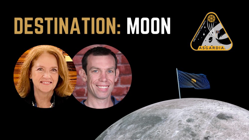 Mientras los Símbolos Nacionales de Asgardia se dirigen a la Luna, la Ministra de Cultura de Asgardia, Cheryl Gallagher, entrevista al CEO de LifeShip, Ben Haldeman.
